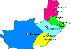 Bunia, Nyanya, Mambasa, Mahagi, Aru